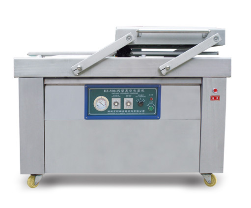 真空包裝機是由真空系統、抽充氣密封系統、熱壓封合系統、電器控制系統等組成。外抽式真空包裝機是將包裝袋內抽成低真空后,當即自動封口。對某些松軟 的食品,經全自動真空包裝機包裝后,可縮小包裝體積,便于運輸和貯存。臺式真空包裝機原理是以塑料復合薄膜或塑料鋁箔復合薄膜為包裝材料,對固體、液體、 粉狀、糊狀的食品、化學藥品、電子原件、精密儀器表、稀有金屬等進行真空包裝或真空抽氣包裝。
